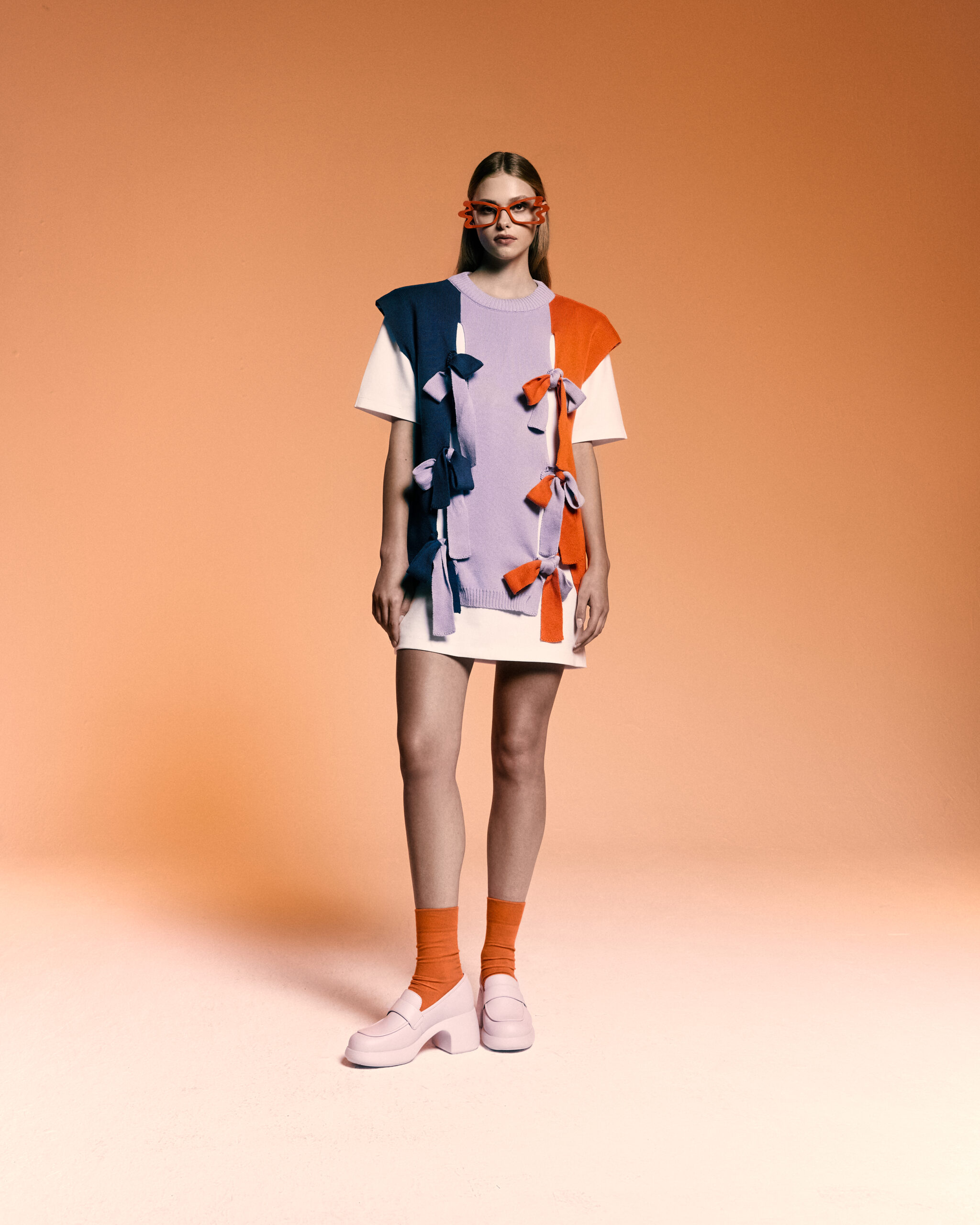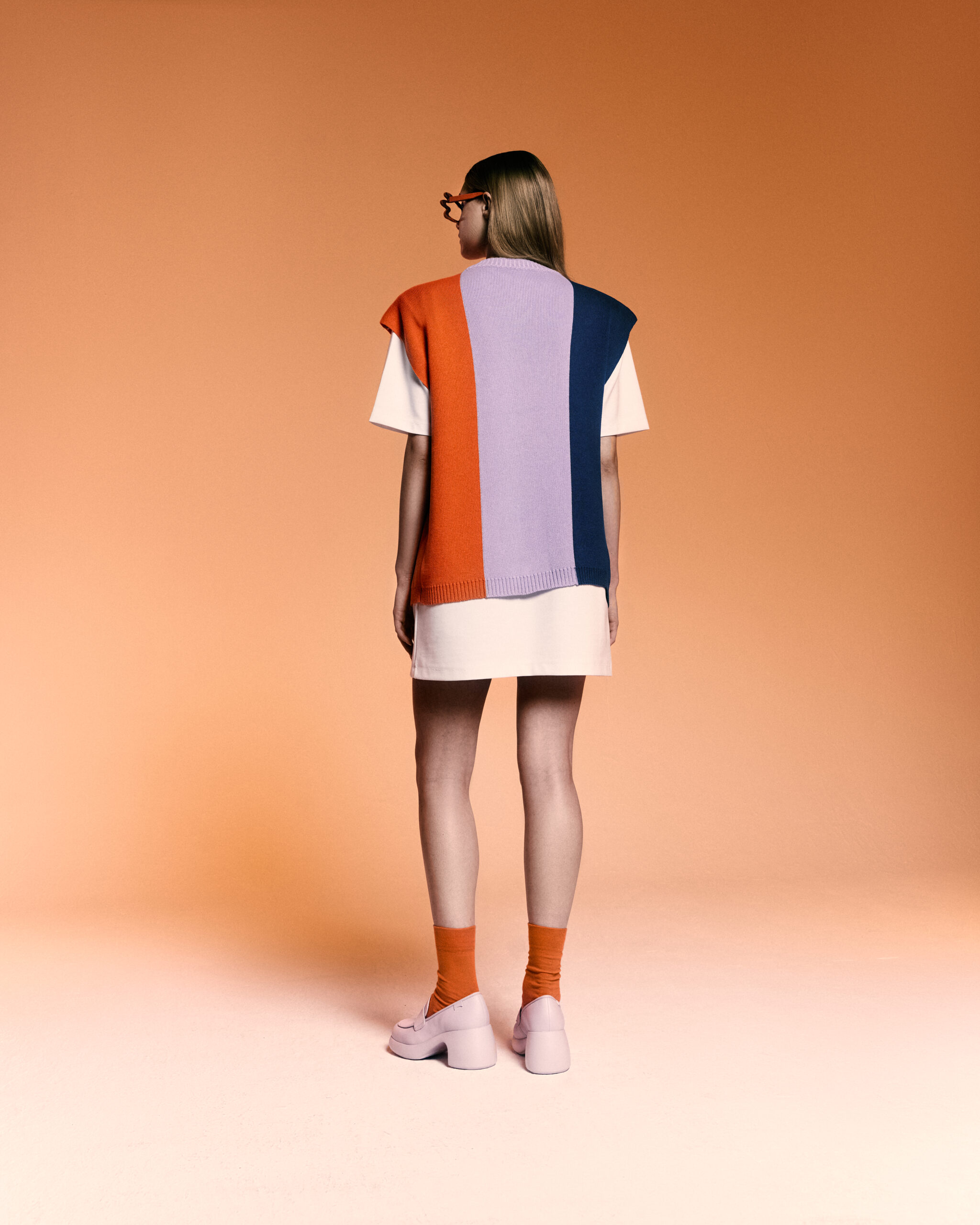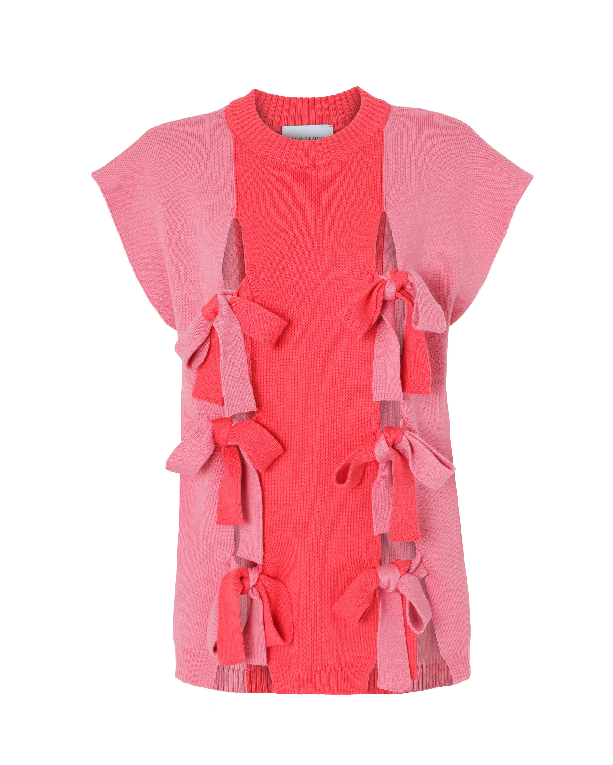 Wyjątkowa kamizelka składająca się z 3 paneli wiązanych na kokardy. Wykonana w 100% z naturalnych włókien, z czego połowa pochodzi z recyklingu – jest przyjazna zarówno dla skóry, jak i dla środowiska.