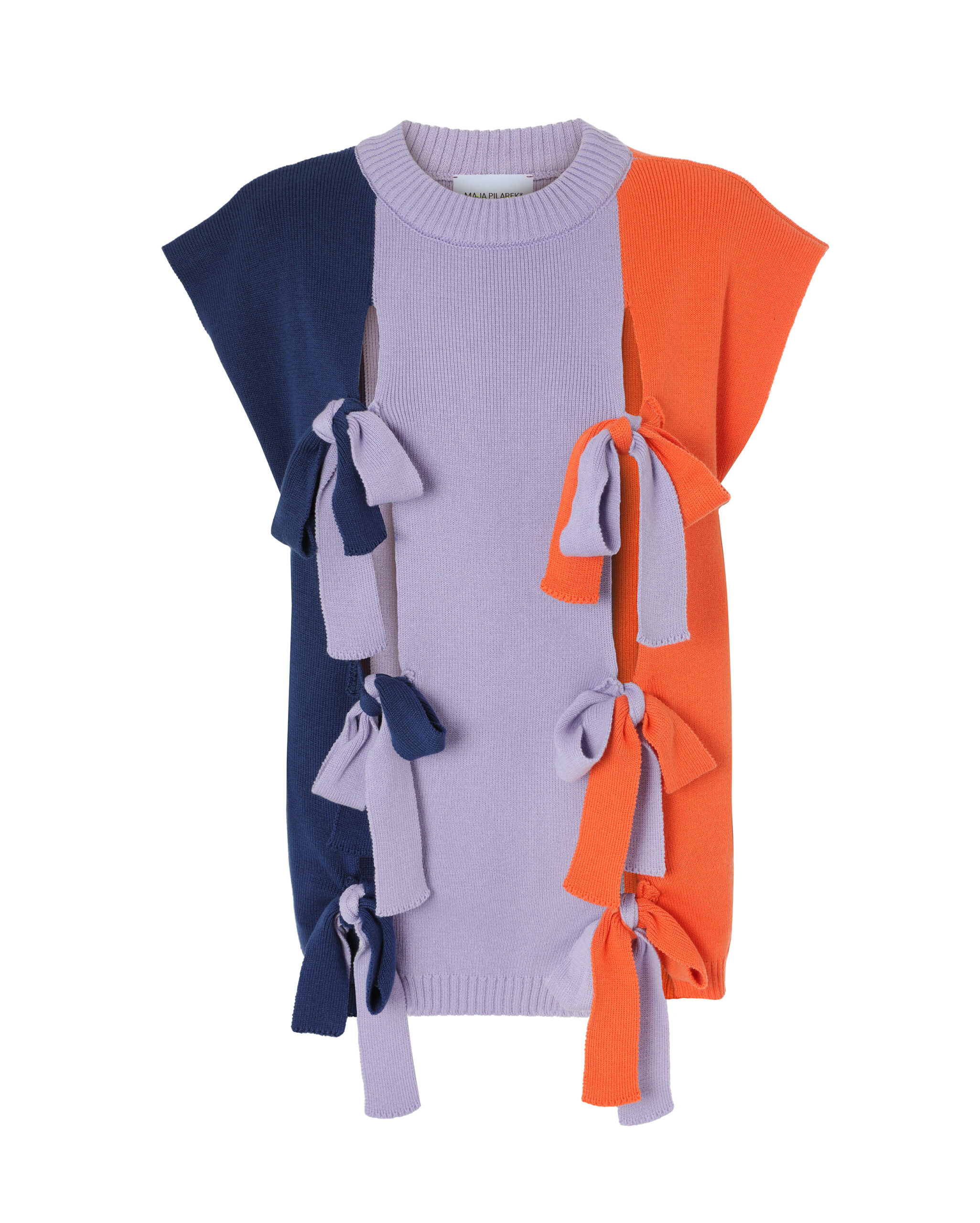 Wyjątkowa kamizelka składająca się z 3 paneli wiązanych na kokardy. Wykonana w 100% z naturalnych włókien, z czego połowa pochodzi z recyklingu – jest przyjazna zarówno dla skóry, jak i dla środowiska.