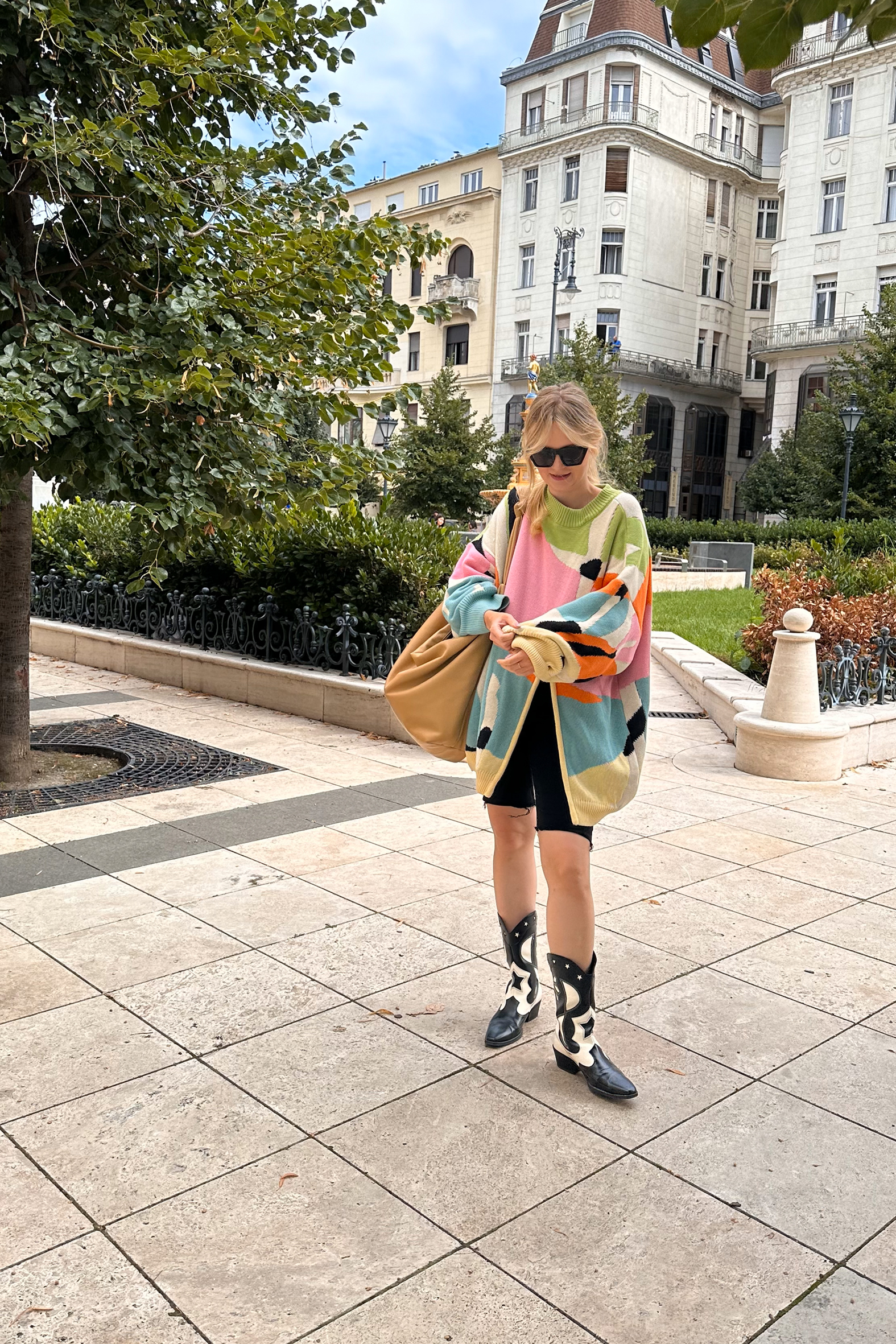 Ten sweter pasuje do wszystkiego – jeansów, ciemnych i jasnych, szerokich i wąskich spodni, bermudów czy spódnic. Świetnie wygląda też do długości mini i kowbojek lub bikerów.